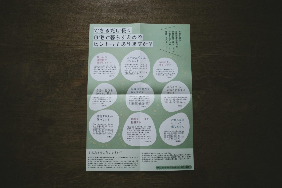 集まったたくさんの「自宅で暮らし続けるためのヒント」から厳選された言葉たちは、とっても前向き。ぜひみなさんに読んでいただきたいです!